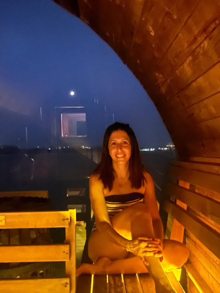 Y, finalmente, las fotos de la sauna. Esto me encantó…Sé que, a simple vista, puede parecer una locura eso de bañarse en el agua congelada, lloviendo y de noche. Pues repetiría ahora mismo.