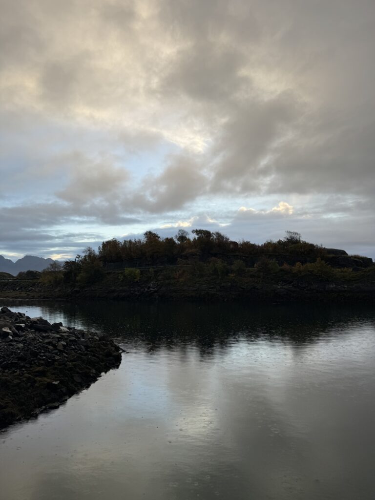 La primera vez que fui a ese sitio, lo hice dando un paseo, admirando ese atardecer dorado que pintaba el paisaje con esa luz que solo he visto en las Lofoten, y sin chaqueta, porque apenas hacía frío. Esa segunda vez, lo hice casi corriendo, con un frío de morir y con las primeras gotas cayendo ya sobre mi cabeza. Porque llovió. Y qué pena, porque ese lugar es muy especial en la novela y, también para mí, y no pudimos disfrutarlo como me hubiera gustado.