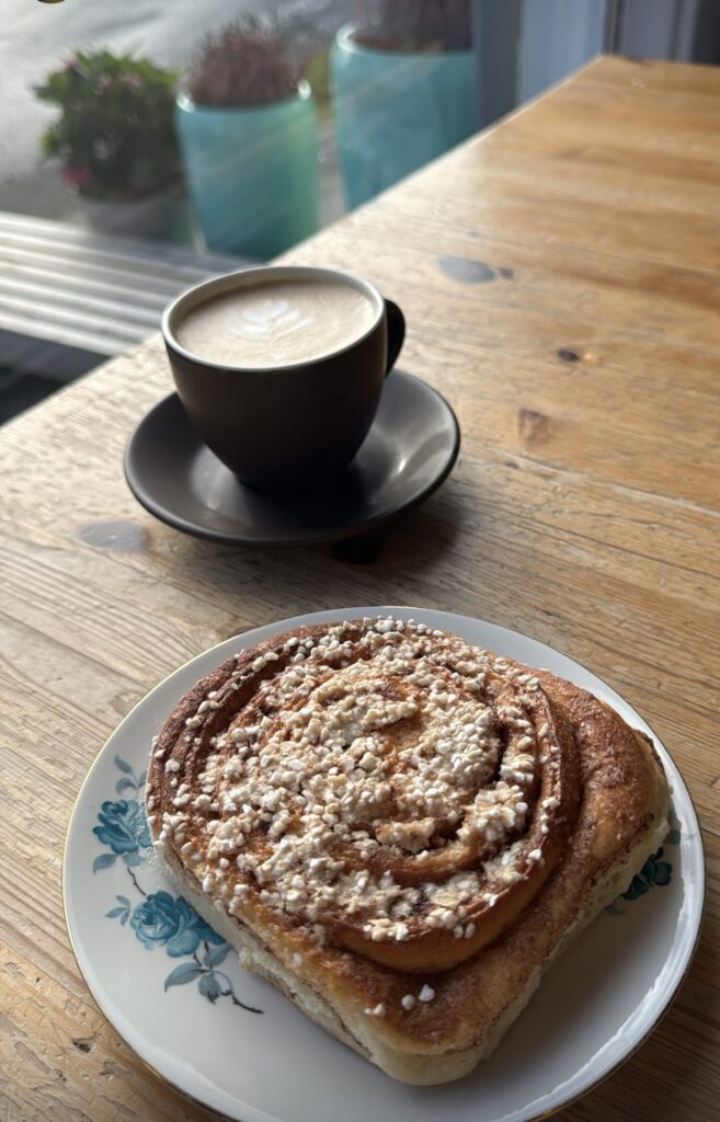 Y qué increíble es esto de escribir, porque creas en tu cabeza un mundo aparte, donde viven otras personas y donde tú formas parte de su vida. De hecho, la cafetería no está enfrente del DIGG, sino un poco más alejada, pero en mi mente puedo ver la fachada de Silje’s Bakery desde la barra. Para ser franca, me lo había creído tanto que, cuando llegué y no la vi allí delante fue como «¿Perdona? ¿Por qué no está ahí?».