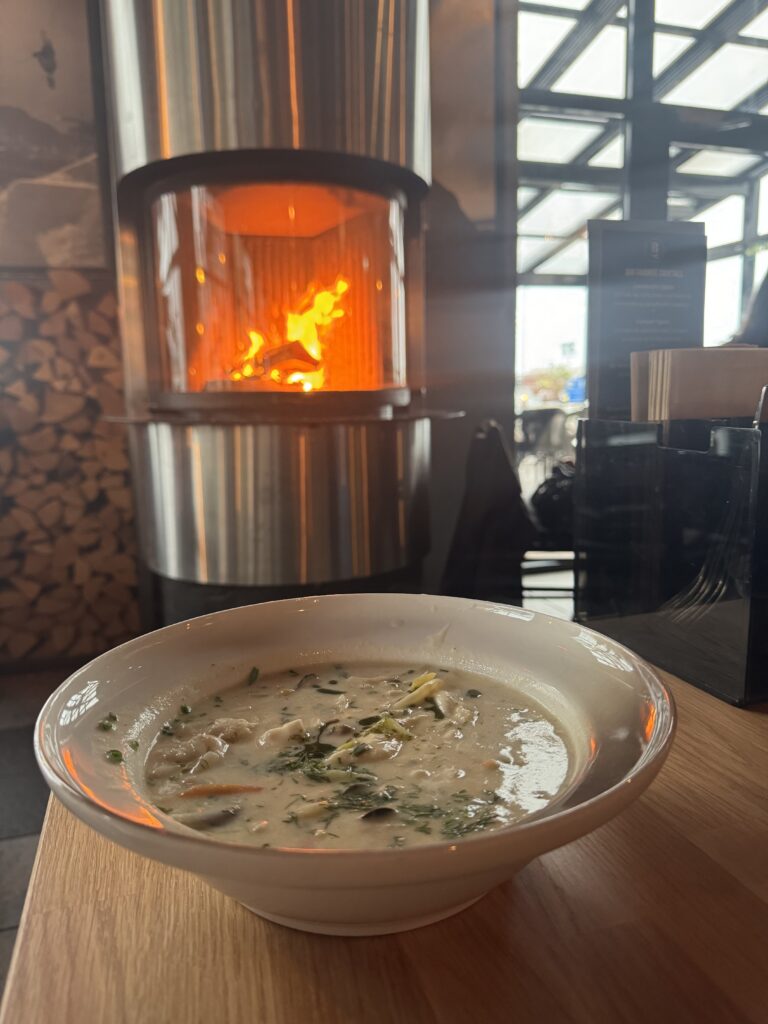 Por suerte, en el Bacalao, el restaurante donde almorzamos, había una estufa de leña y estuve a nada de meterme dentro. Me pedí una sopa de pescado y tomé asiento en la silla que estaba delante de la estufa. Ahí reviví, pero me costó lo mío.
