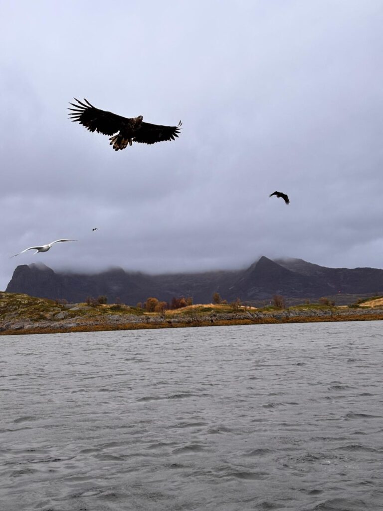 En Svolvaer teníamos contratado el safari de las águilas y, casi dos meses después, sigo sin tener claro si me gustó o no, porque en ocasiones pensaba «Menuda tortura, esto es peor que un castigo, pero de los chungos» y luego, cuando el vikingo ese detenía la lancha motora, pensaba «Vale, está guay», sobre todo cuando llegamos al Fiordo de los Trolls.